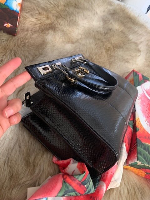 My Christmas wish for the year 2020 has not only been to be able to go out on a date with my boyfriend in a cute outfit but, to also to shop freely without the mandatory dreadful accessory (mask). This year’s circumstances has given us way more time than we’ve ever wished for even during the busy holiday season. I’m the kind of woman that likes to feel a little pressured with my obligations as well as my daily task, it makes me more productive. Still, I’m thankful for the extra time because I used it wisely here at home, I had the time review my closet to see if it needs any additions and, I realized it’s missing another exotic handbag; to match my Versace black snakeskin pumps (well talk about the Versace pumps in a bit).